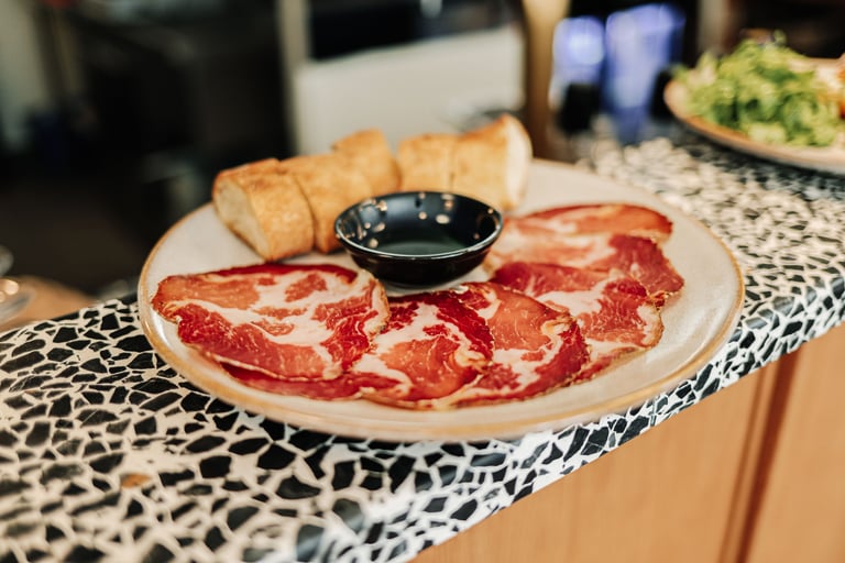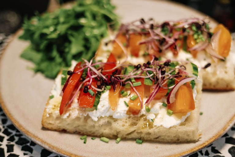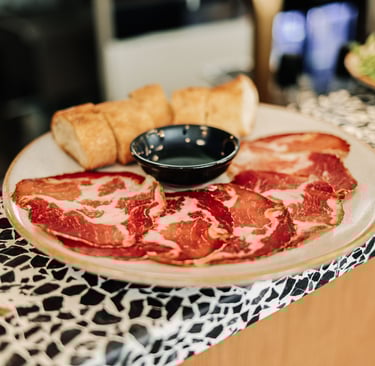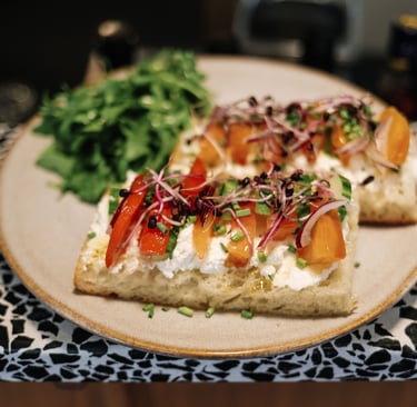 At the moment, we offer a lunch menu that includes options like savory cakes, chili con carne, and lentil curry, along with desserts.